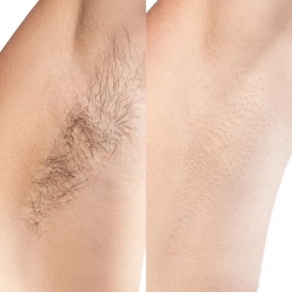 Ansikte, armhålor, ben, rygg, mage och intimområde